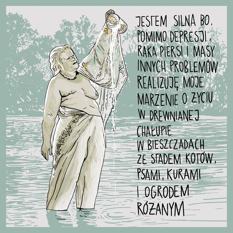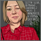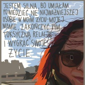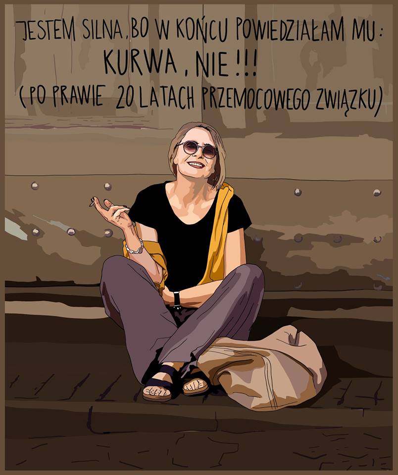 Marta Frej jest artystką, ilustratorką, ateistką, malarką, feministką, animatorką kultury i prezeską Fundacji Kulturoholizm. Martę Frej zna chyba każdy w Polsce. Artystka ostro i z poczuciem humoru komentuje w swoich pracach polską rzeczywistość. Tym razem postanowiła pomóc kobietom poczuć pewność siebie i siłę, tworząc nowy projekt „Jestem silna bo…”. W ramach projektu kobiety wysyłają do niej swoje zdjęcia z odpowiedzią dlaczego są silne.